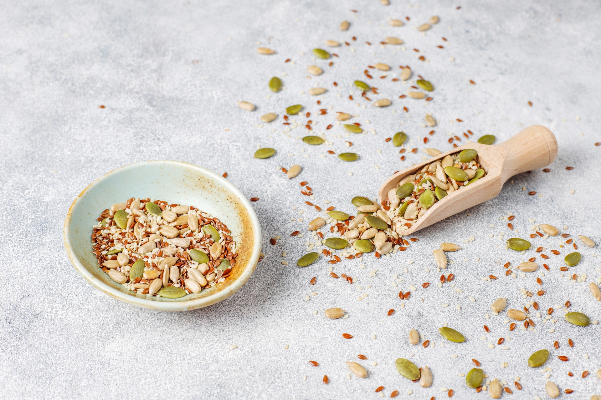 Seeds like sunflower, flax, and chia can be added to meals daily — in salads, smoothies, or as snacks. They provide omega-3 fatty acids and other nutrients that may help support prostate health.